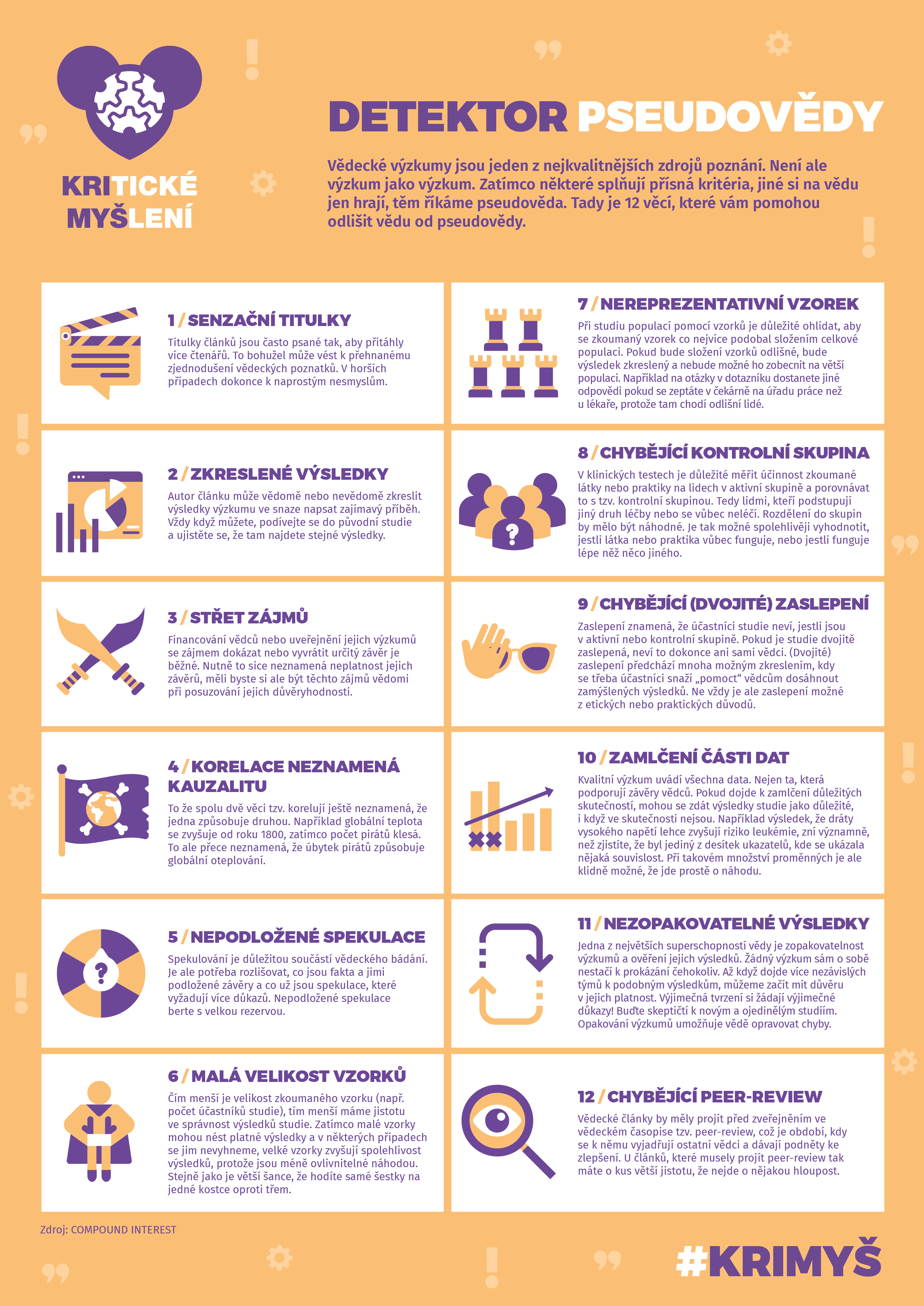 Kritické myšlení je schopnost zručně pracovat se svým rozumem a logikou. Můžeme tak odhalit dezinformace, mýty a polopravdy, a dopátrat se kvalitních a užitečných informací. Uvědomění si klamů a iluzí, které ovlivňují naše vnímání a rozhodování, je prvním krokem k jejich překonání a rozumnějšímu jednání. Krimyš je cesta k větší objektivitě a růstu bez náhody.